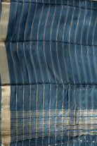Drape yourself in sophistication with this pure satin designer saree in a deep, rich teal. The fabric is beautifully accented with subtle, shimmering horizontal stripes and a gold zari border. It is perfectly paired with a contrasting, heavy maroon brocade blouse featuring intricate gold embroidery on the sleeves and neckline