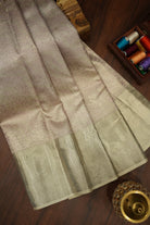 This luxurious silk saree features a beautiful champagne gold body, intricately woven with a subtle self-design. The fabric shimmers with an elegant sheen, creating a sophisticated and rich look. The saree is finished with a wide silver zari border, adding a touch of classic elegance. This is a perfect choice for weddings, grand celebrations, and festive occasions where you want to make a regal statement.