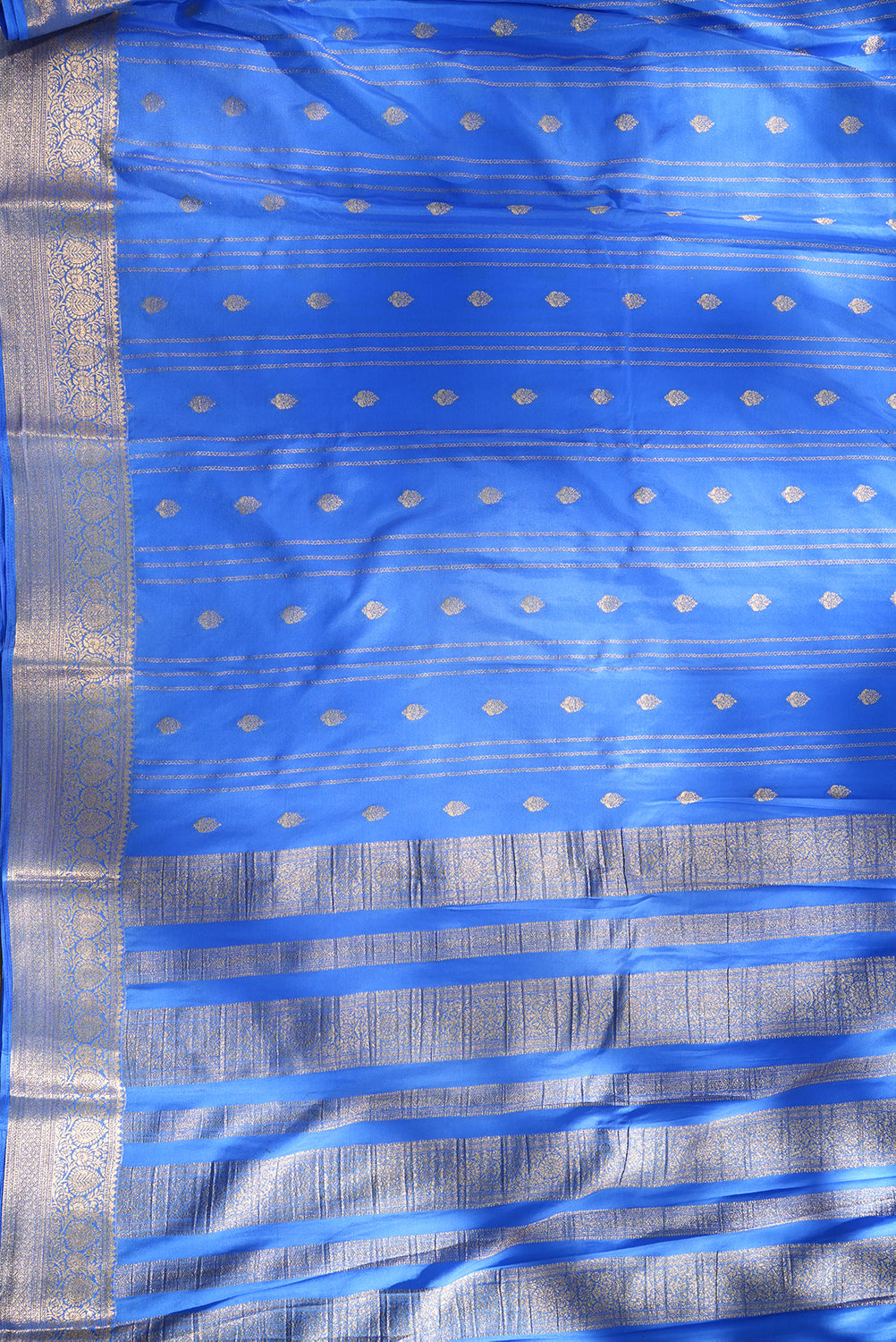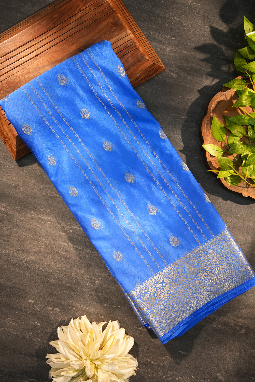 Royal Blue Banarasi Silk Saree with Silver Zari Stripes