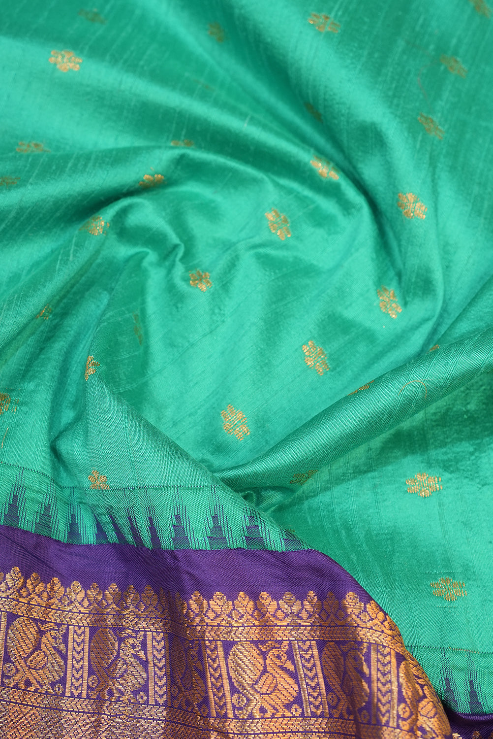Bottel green with gold zari butta silk fabric