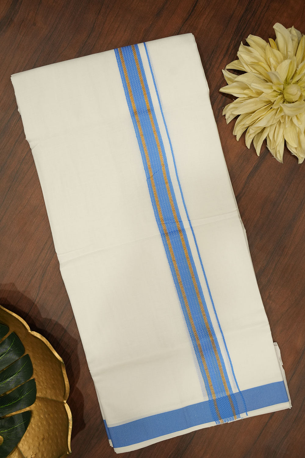 Turquoise Full Sleeve Dhoti Set with Medium White Border ( SIZE - 36 )