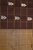 Discover understated beauty with this gorgeous chocolate brown silk saree. Its earthy, warm tone is beautifully complemented by delicate geometric patterns that add visual interest without overpowering the rich color. Unstitched blouse attached.