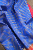 Cobalt Blue Designer Saree with Shimmering Windowpane Checks
