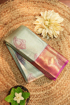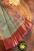 Seafoam Green Silk Saree with Magenta Zari Border