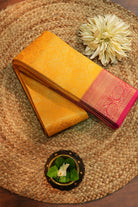 Sun-Kissed Yellow Silk Saree with Rani Pink Zari Border