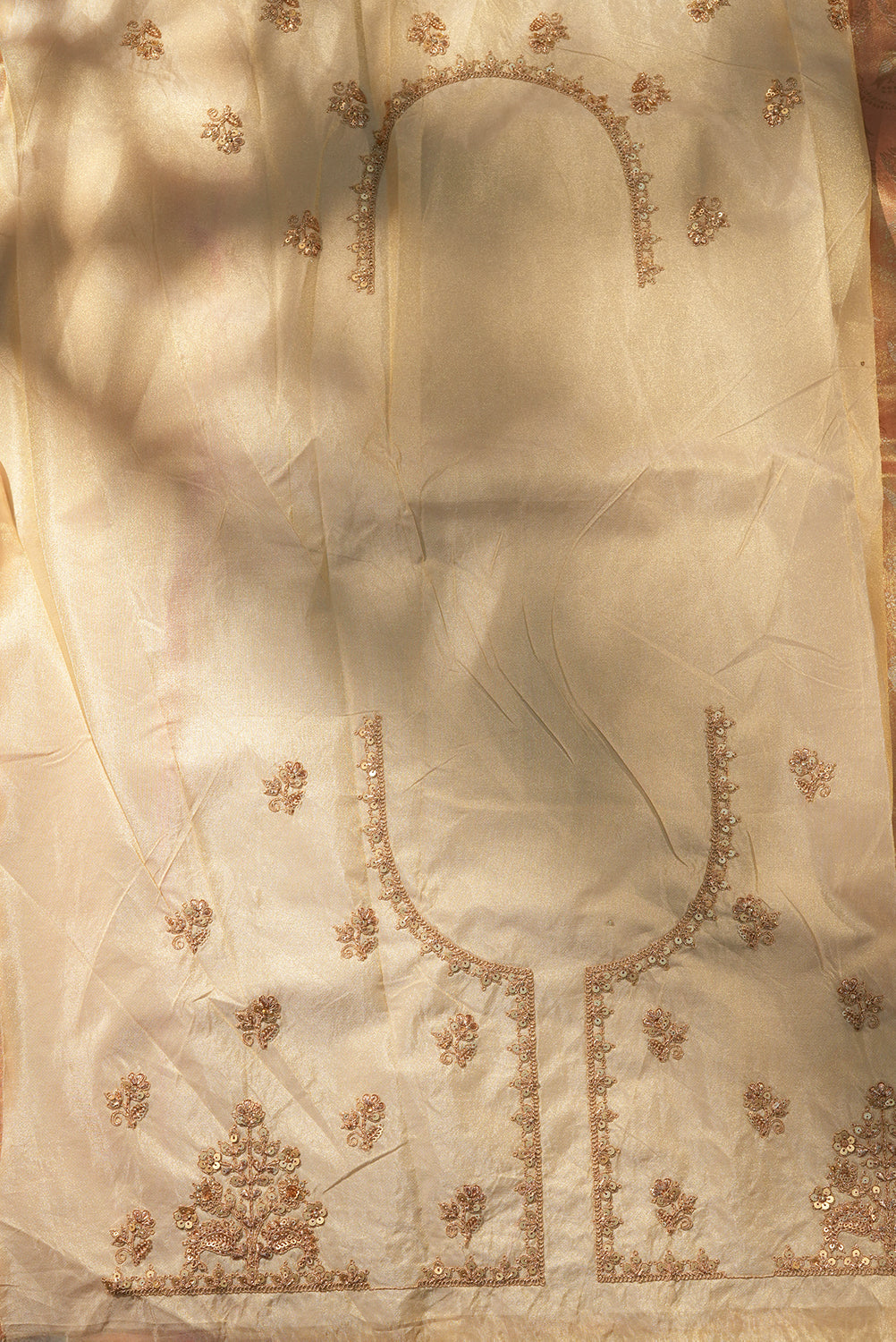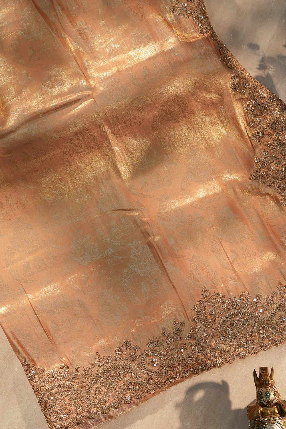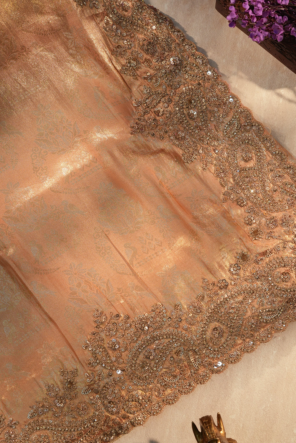 Shimmering Peach-Gold Tissue Kanjivaram Silk Saree