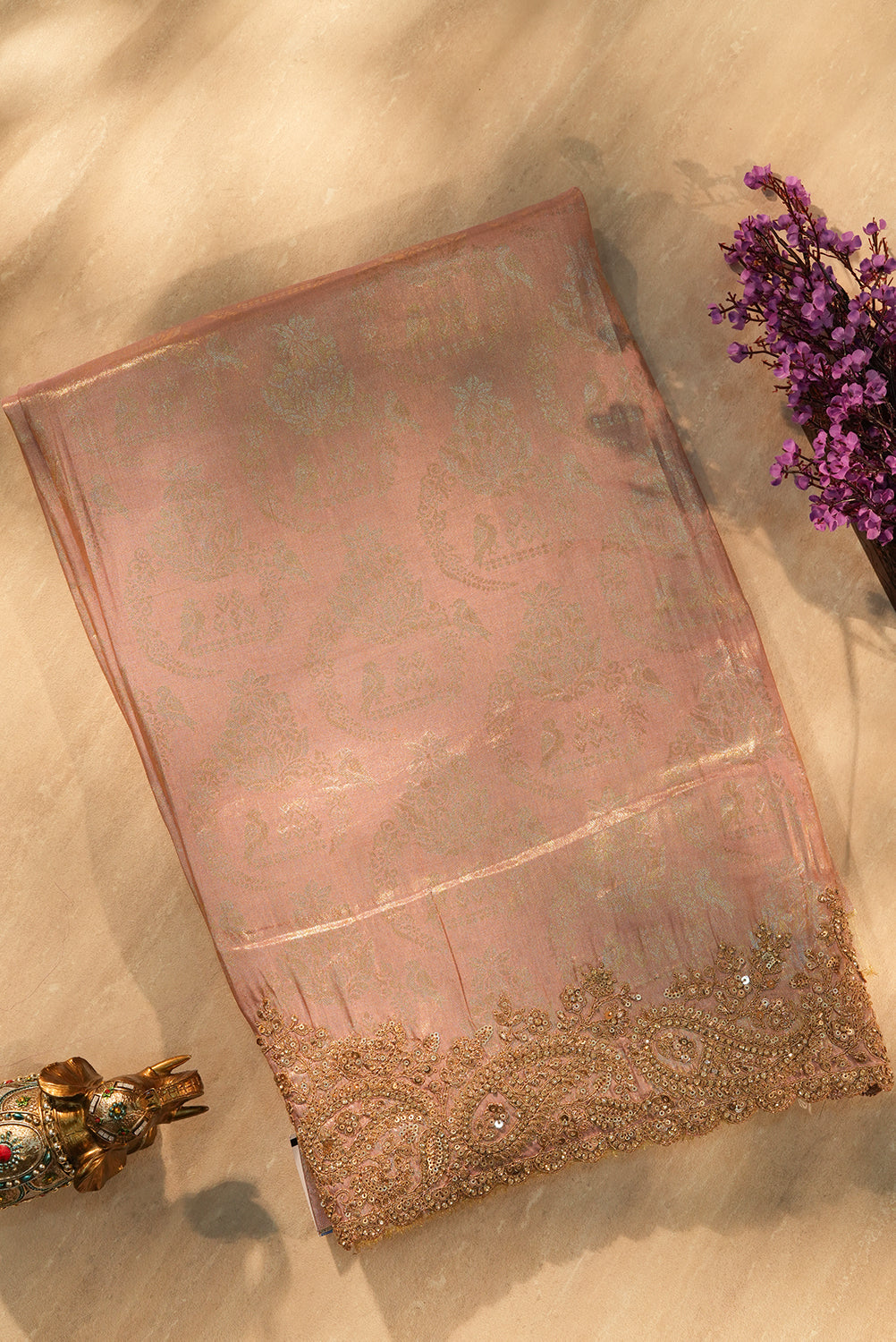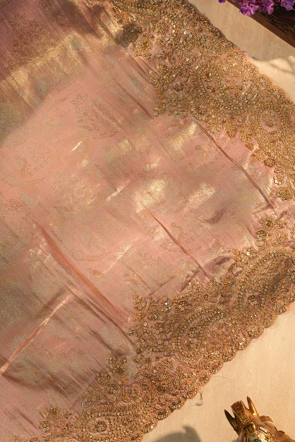 Rose Gold Tissue Kanjivaram Silk Saree