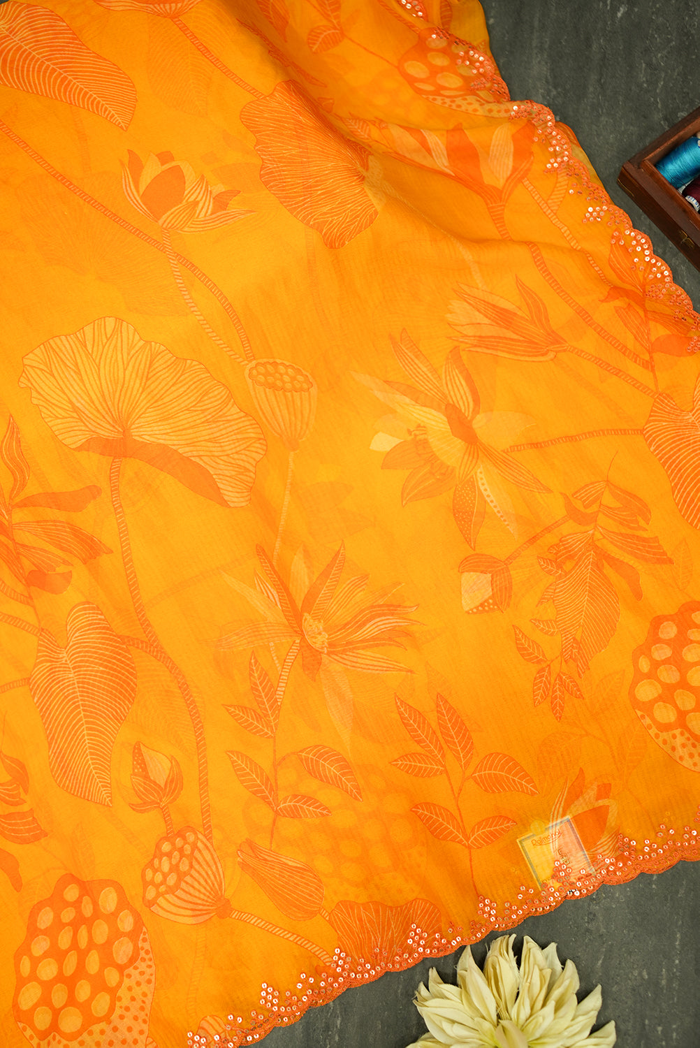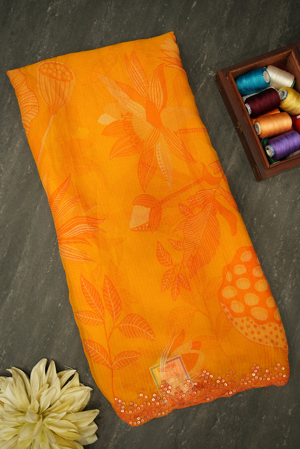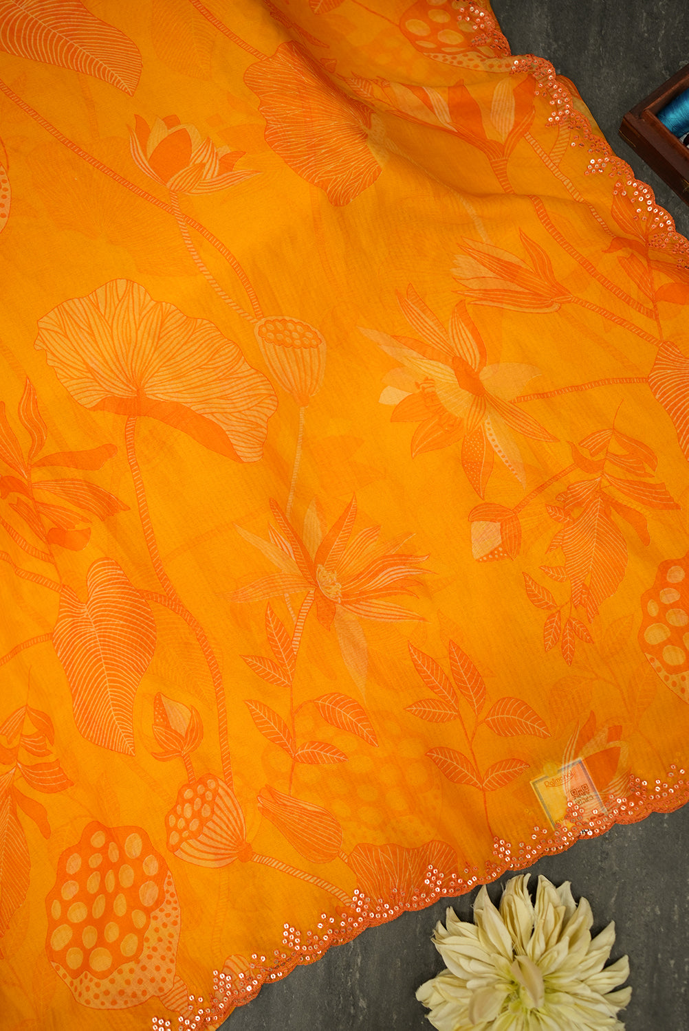 Sunshine Yellow-Orange Chiffon Saree with Sequin Border