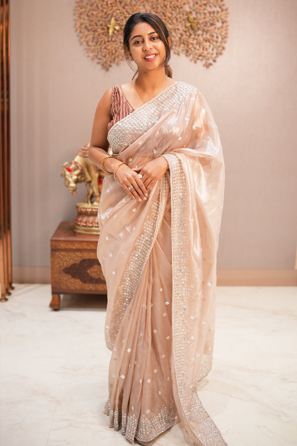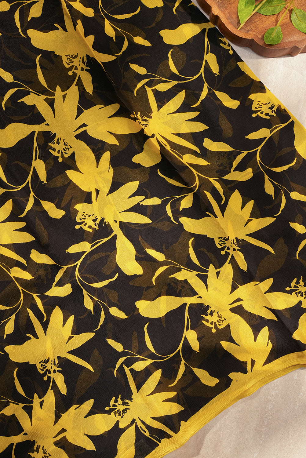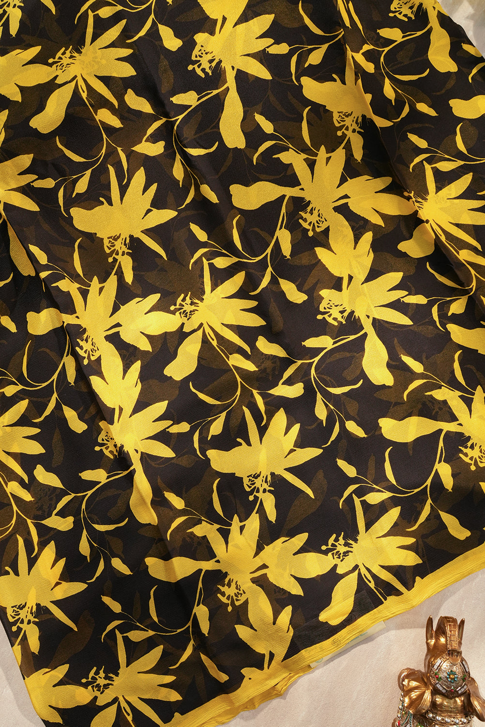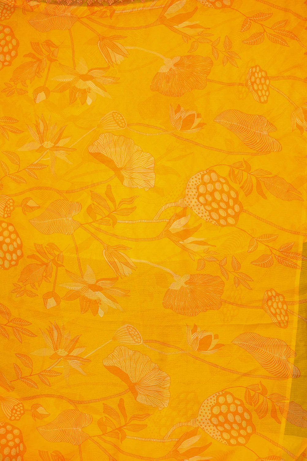 Sunshine Yellow-Orange Chiffon Saree with Sequin Border