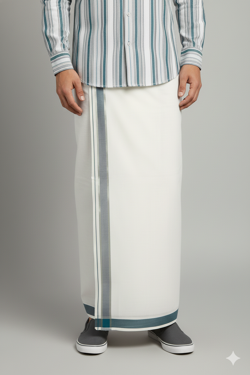 White Cotton Dhoti with Grey Border