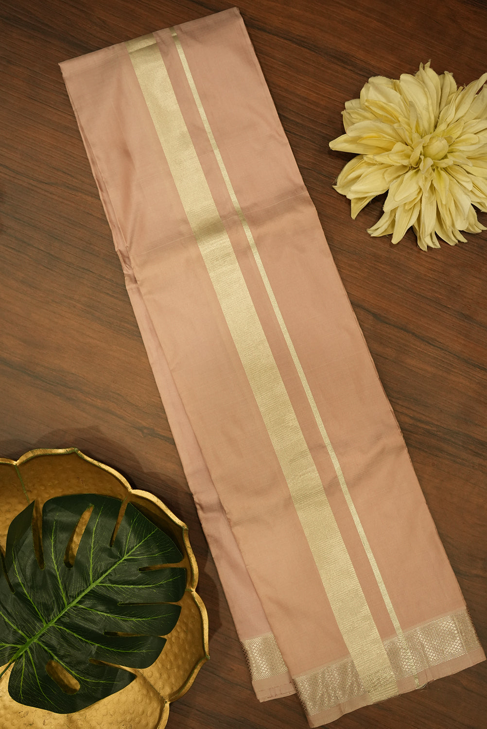 Onion pink pure silk dhoti having small silver zari border.(4 yards)