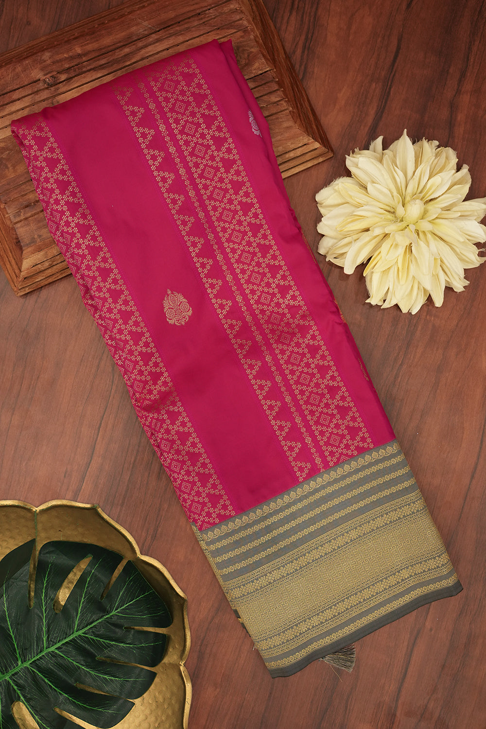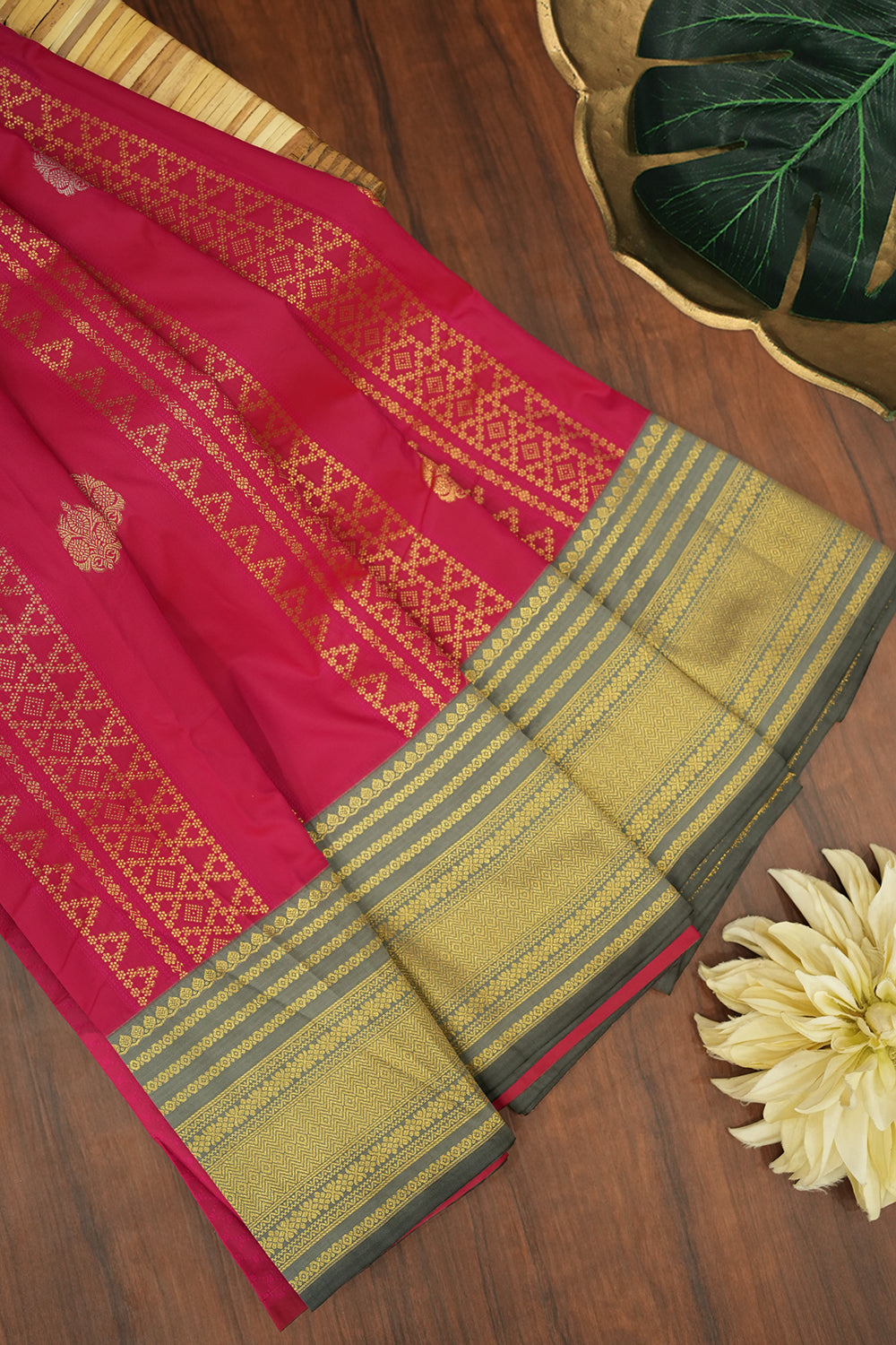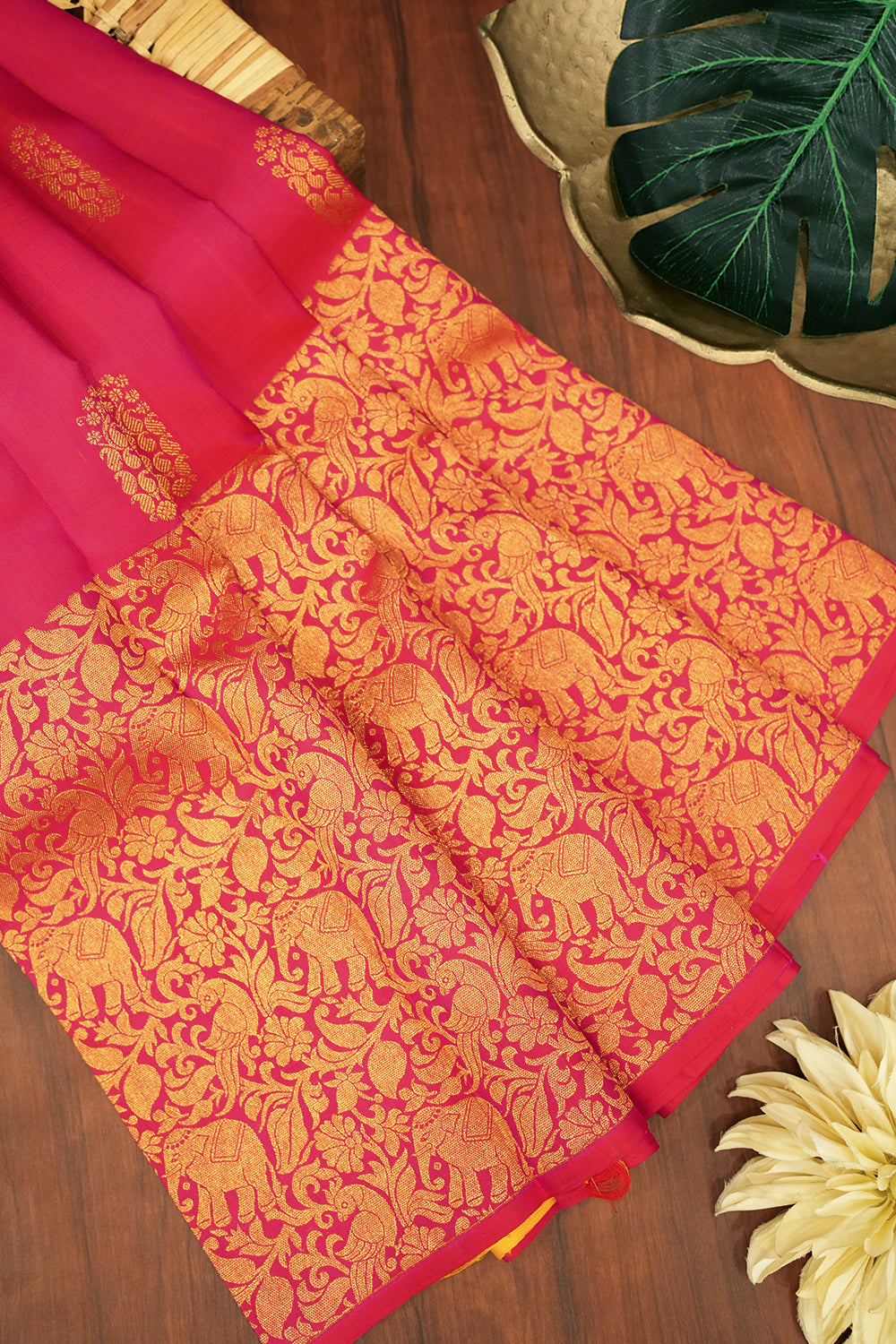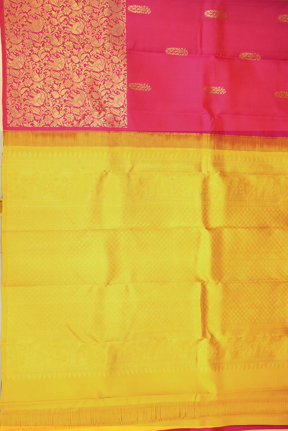 Kanchipuram silk sarees are beautiful tales woven in a six yard canvas of pure silk and lustrous zari. Considered an iconic part of India's rich heritage of handloom weaves, Kanchipuram pattu sarees are revered for their vibrant heartstopping colours, charming motifs that enchant with artistic excellence , and lustrous zari that can put the stars to shame. KNOW MORE