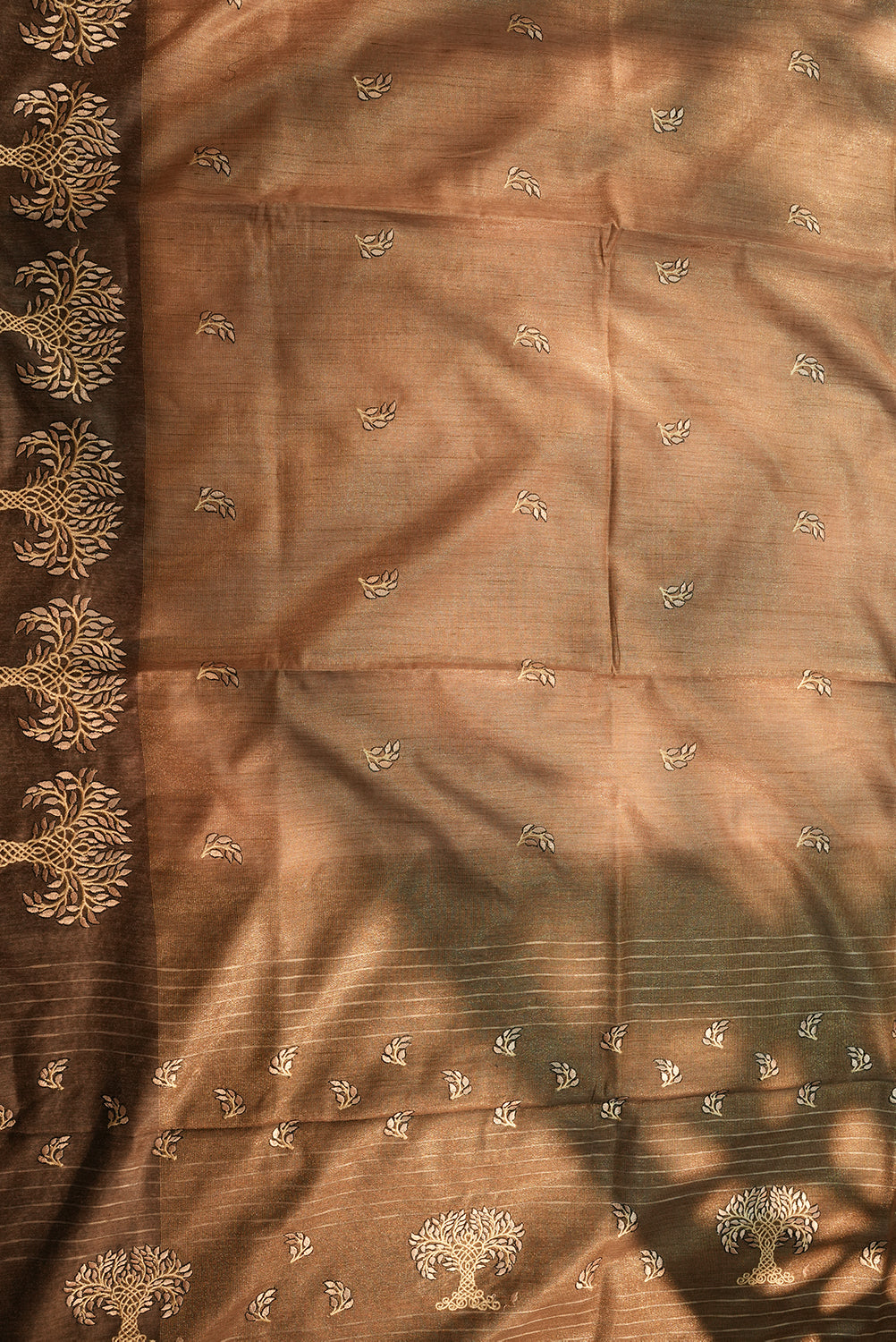 Antique Copper Tussar Silk Saree with Tree of Life Embroidery