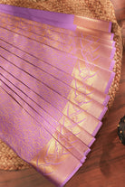 Lavender Lilac Silk Saree with All-Over Gold Leaf Buttas