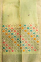 Pastel Mint Green Linen Saree with Multicolour Floral Embroidered Blouse