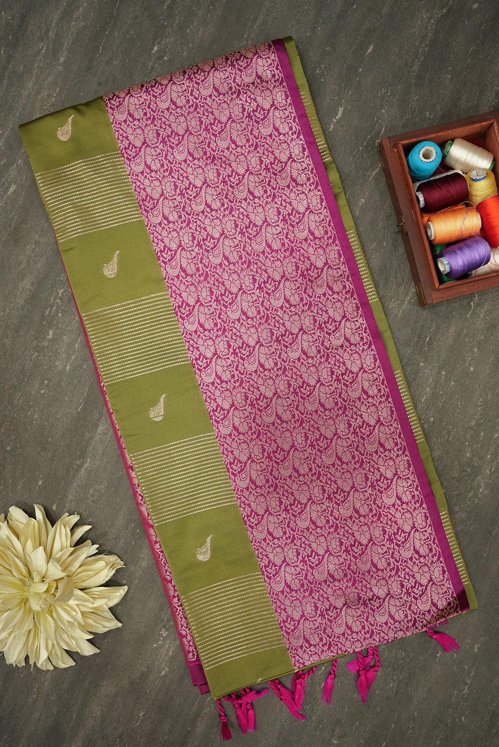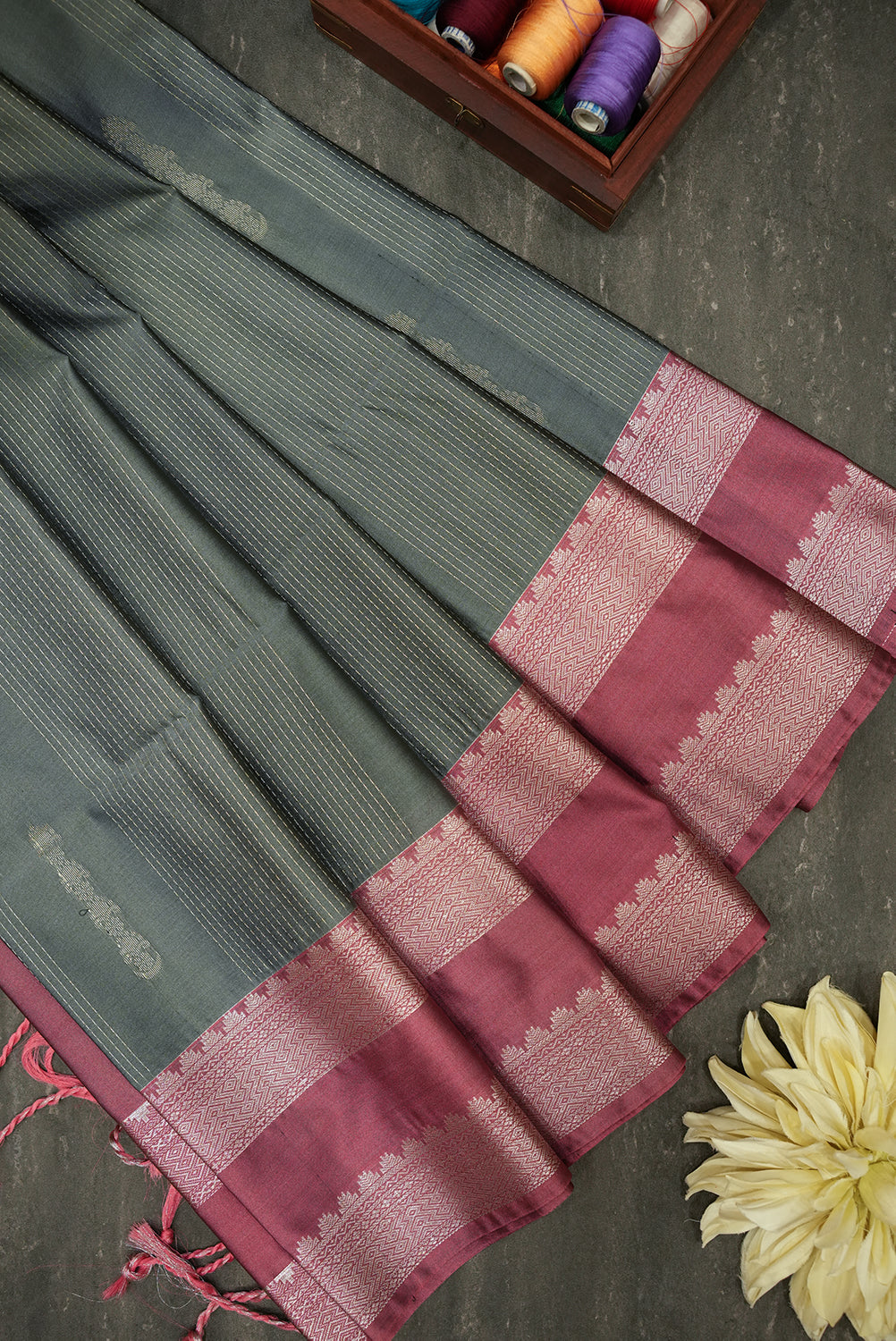 Dual-Tone Raw Silk Saree with Tulip Motifs