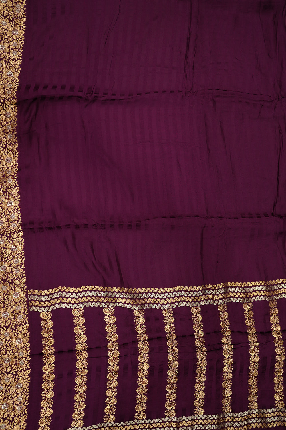 Brown Banaras Saree with Chevron and Scallop Pattern