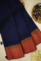 Classic Navy Blue and Maroon Arani Cotton Saree