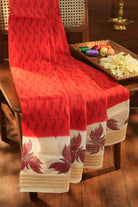 Crimson Leaf Hand-Block Printed Cotton Saree