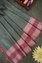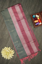 This elegant soft silk saree features a beautiful color contrast with a serene gray body adorned with subtle motifs. The saree is finished with a striking pink pallu, which features intricate silver brocade work. This luxurious and lightweight saree is a perfect choice for festive occasions, weddings, and special events.