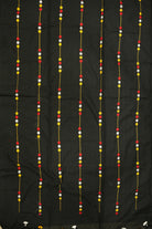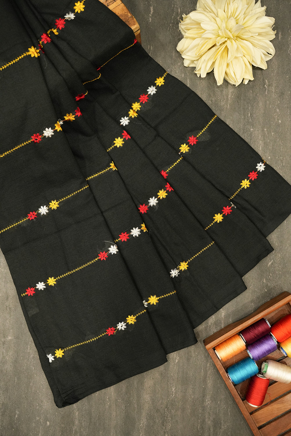 Midnight Black Pure Linen Saree with Multi-Color Floral Embroidery