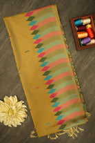 Mustard Yellow Soft Silk Saree with Zigzag Border