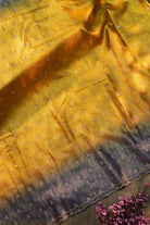 Mustard Yellow to Charcoal Grey Ombre Designer Saree with Scalloped Borders