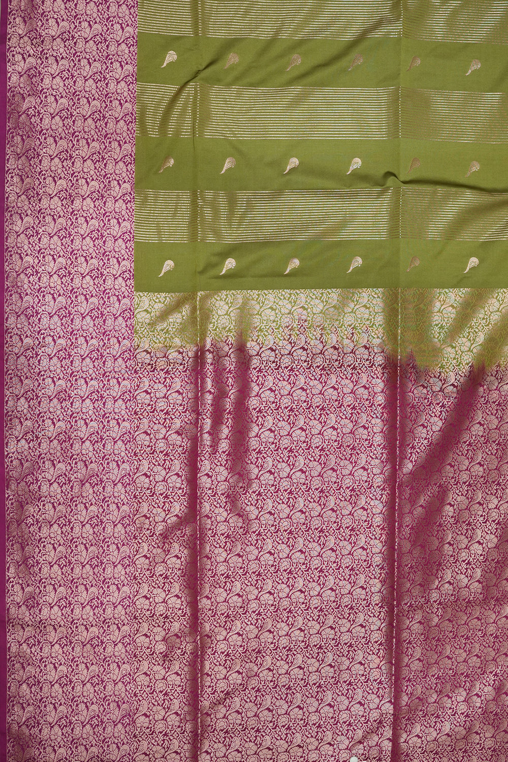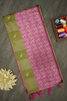 Olive Green and Pink Soft Silk Saree