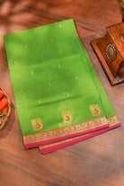 Parrot Green Silk Cotton Saree with Peacock Motifs