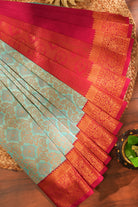 Pastel Blue Silk Saree with Rich Magenta Zari Border