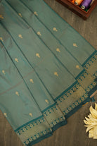 This stunning soft silk saree features a beautiful peacock green body, adorned with subtle golden buttas (motifs). The saree is finished with a stunning wide border in a beautiful dark green with a traditional golden zari pattern. This luxurious and lightweight saree is a perfect choice for weddings, festive occasions, and special events.