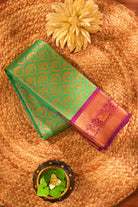 Sea Green Kanjivaram Silk Saree with Royal Magenta Zari Border