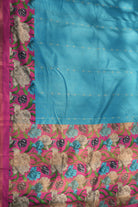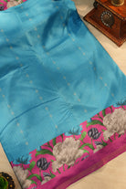 Sky Blue Raw Silk Saree with Floral Pink Border