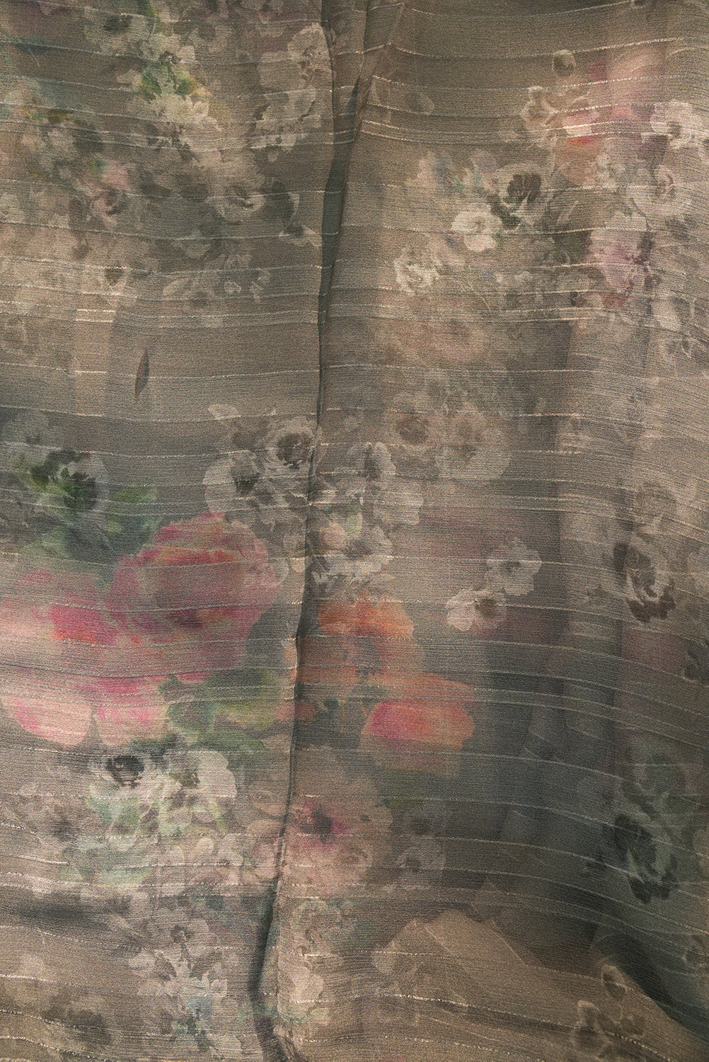Slate Grey Chiffon with Watercolor Rose Motifs