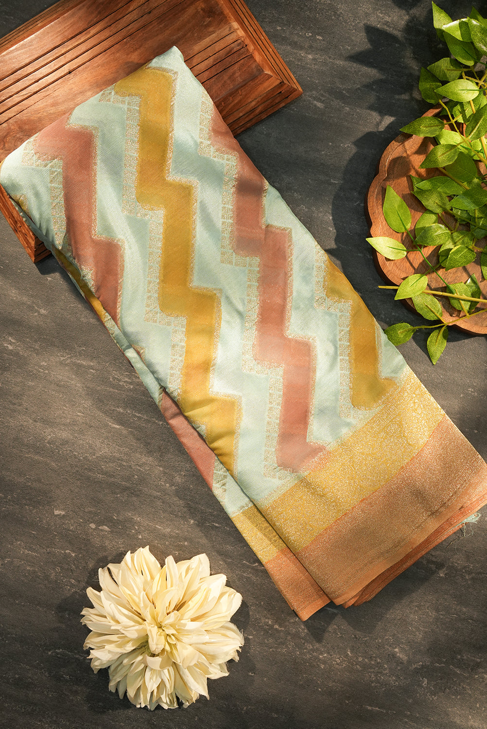 Tri-Tone Zigzag Banarasi Silk Saree