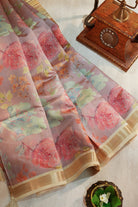 Vintage Rose Garden Raw Silk Saree