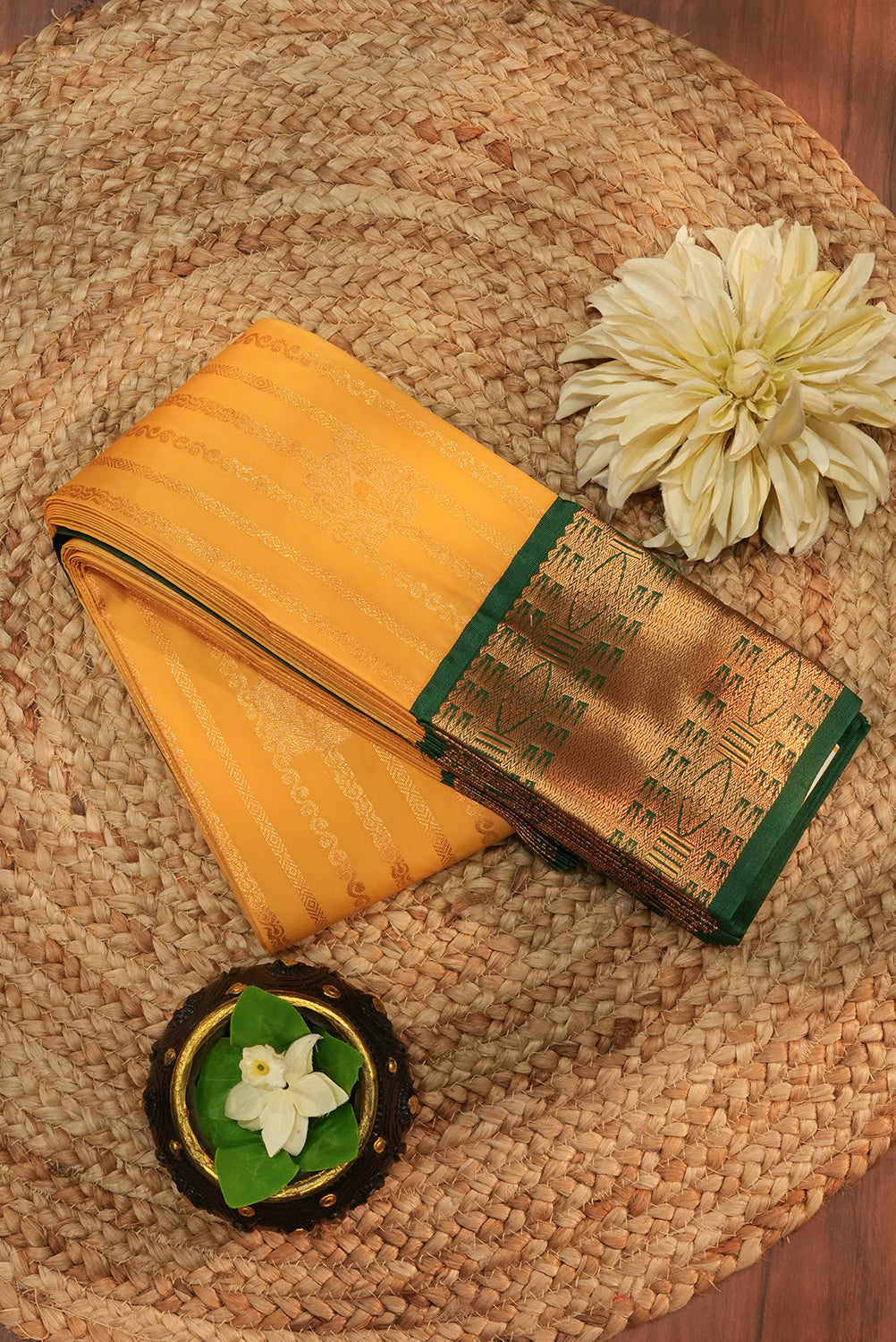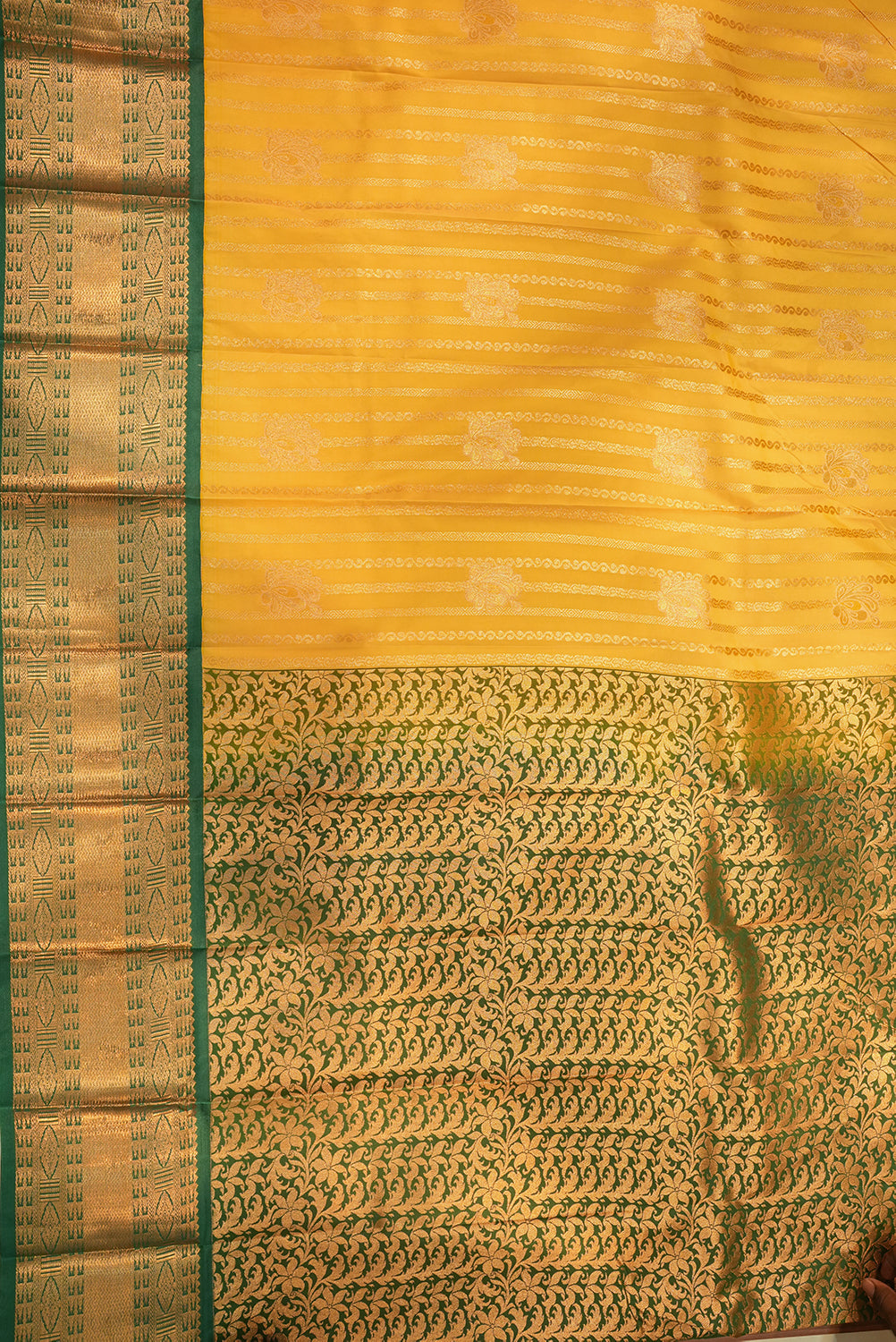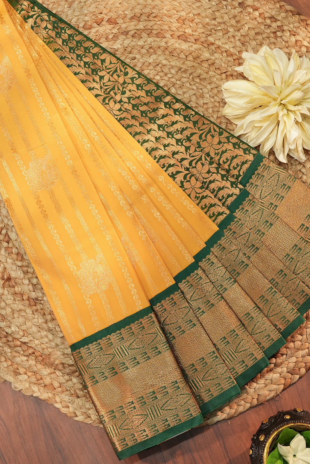 Yellow Kanchipuram Silk Saree with Rich Forest Green Zari Border