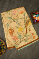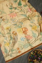Peach Color Bird Motif Tussar Saree with Floral Print
