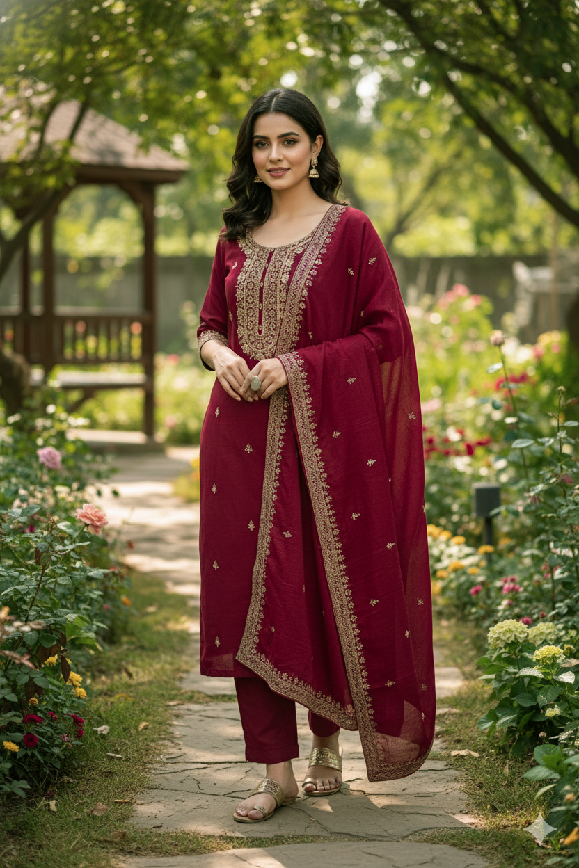 Deep Maroon Embroidered Salwar Suit with Zari Work