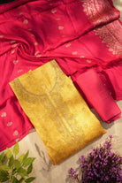 Mustard and Pink Salwar Material with Rich Zari Dupatta