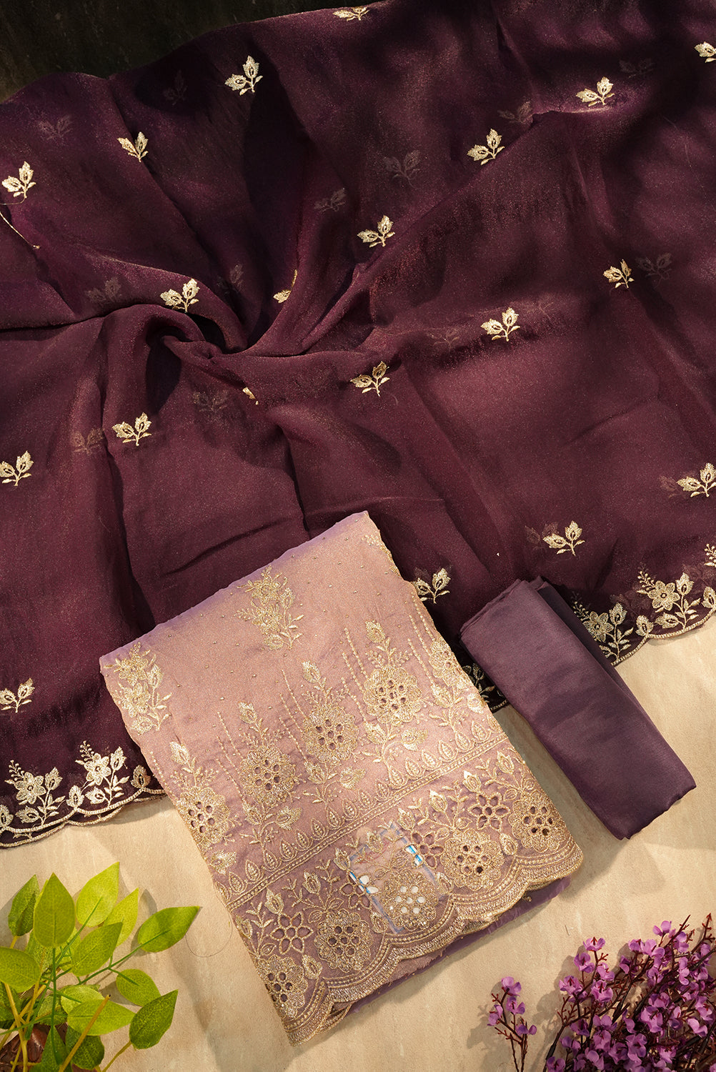 Plum & Dusty Mauve Embroidered Georgette Suite