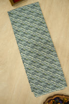 This unstitched three-piece salwar suit set exudes graceful charm. The kurta (top) fabric features a beautiful, serene floral print in shades of blue-green and white, accented by delicate green leaves. The V-neckline is elegantly adorned with shimmering mirror work and lace, adding a touch of subtle sparkle. The set includes a neatly rolled salwar (pant) with a complementary striped pattern and a flowing dupatta (scarf) that carries the stunning floral print with hints of abstract pink lines. Perfect for formal gatherings, daytime events, or sophisticated daily wear.