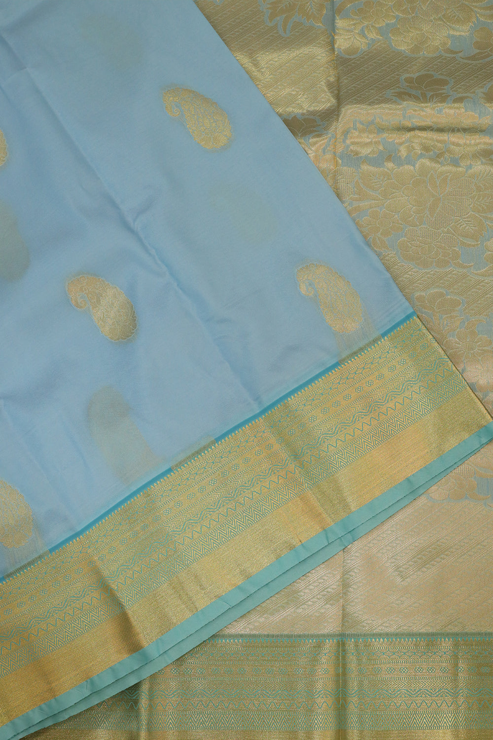 Sky Blue Yuvan Yuvathi Silk Combo having Shirt, Dhoti, Saree
