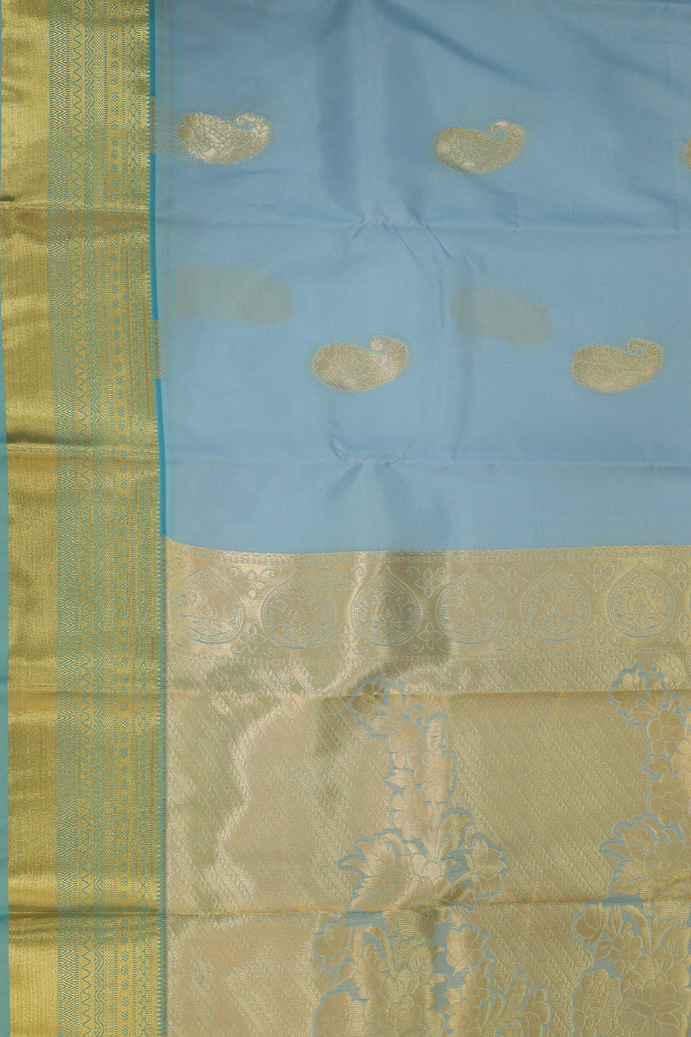 Silk Saree having a beautiful golden mango all over the body. Gold Zari border. Unstitched blouse attached.