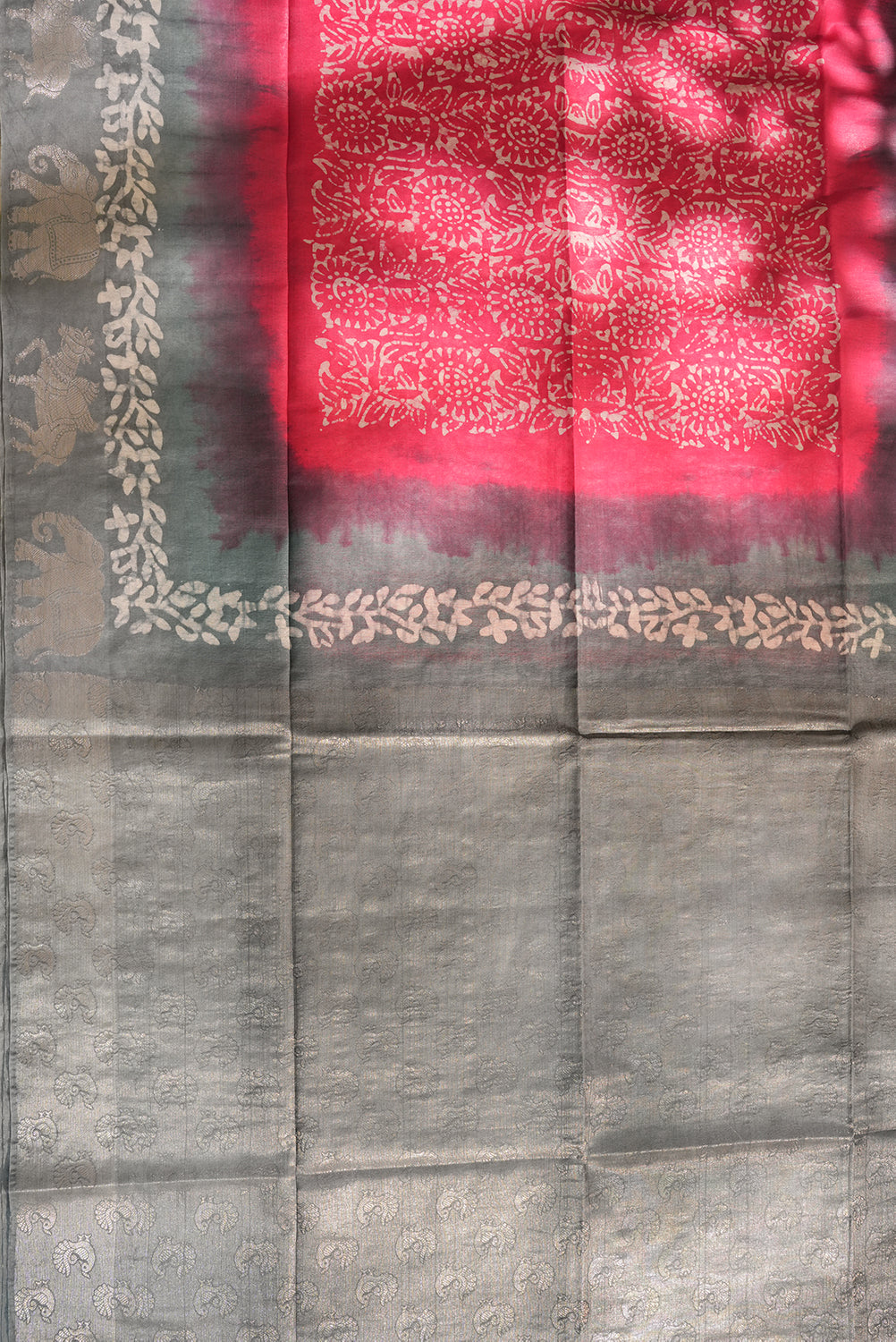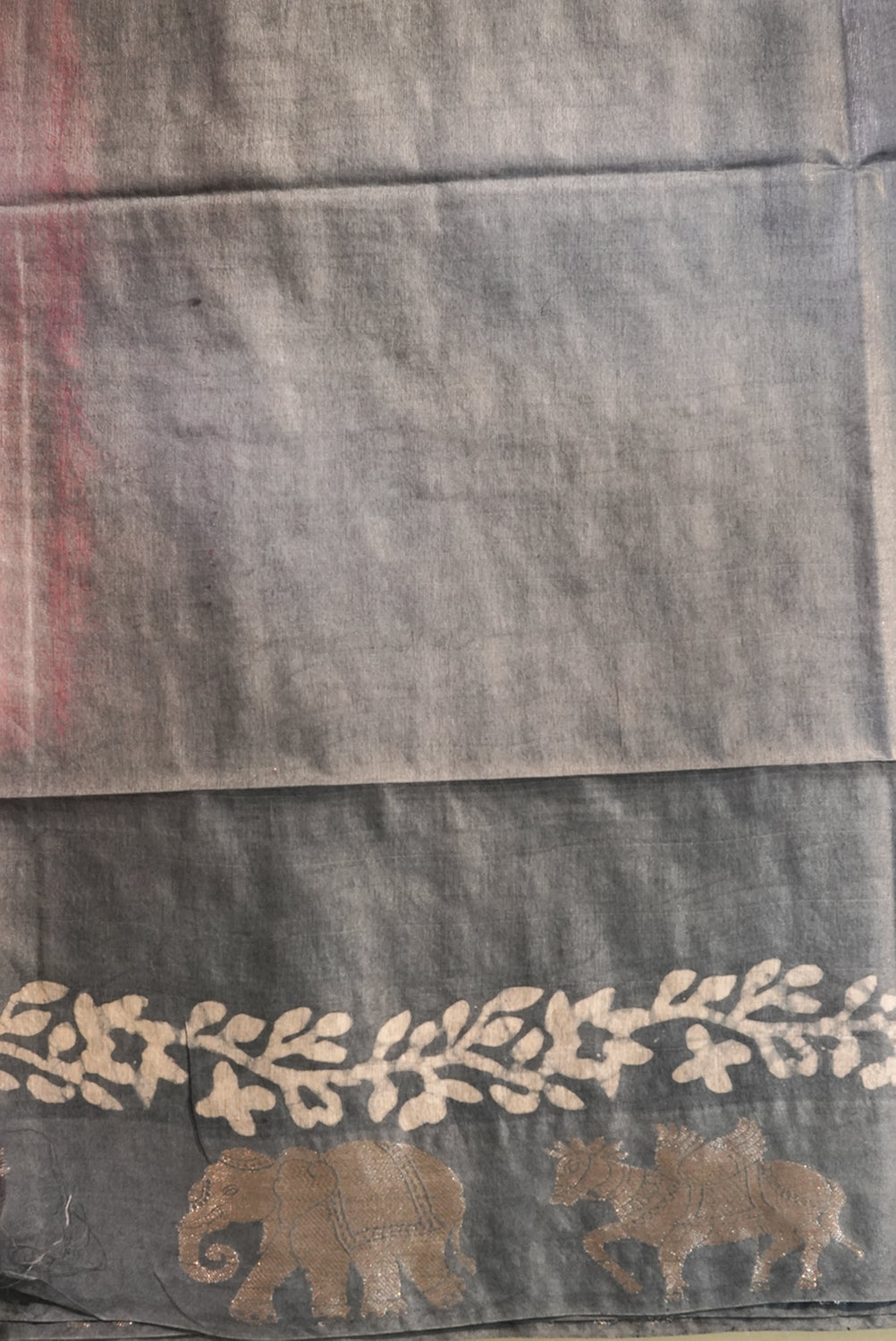 Slate Grey & Magenta Cotton Saree with Silver Zari