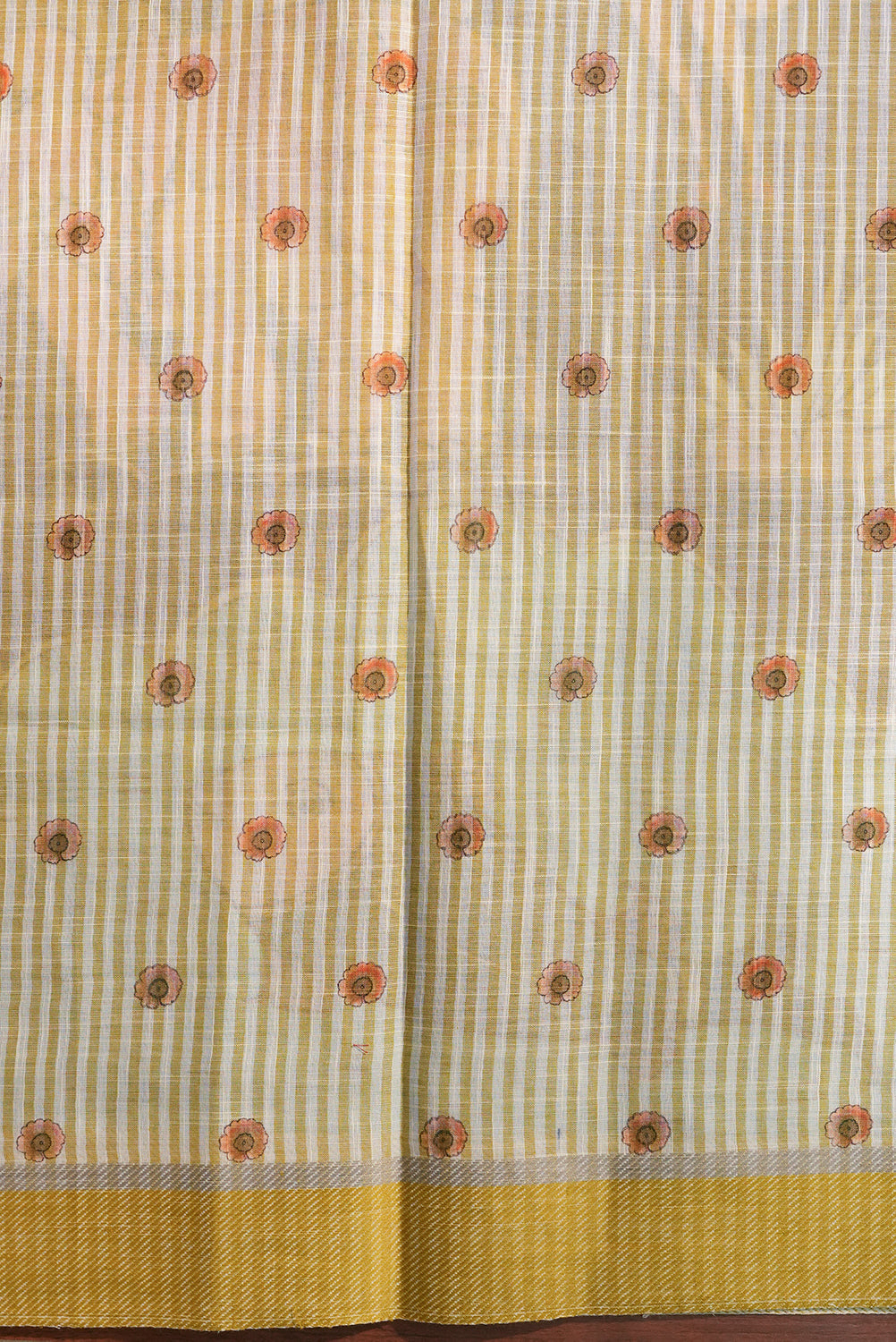 Cream & Mustard Tussar Silk Saree with Hand-Painted Warli Art