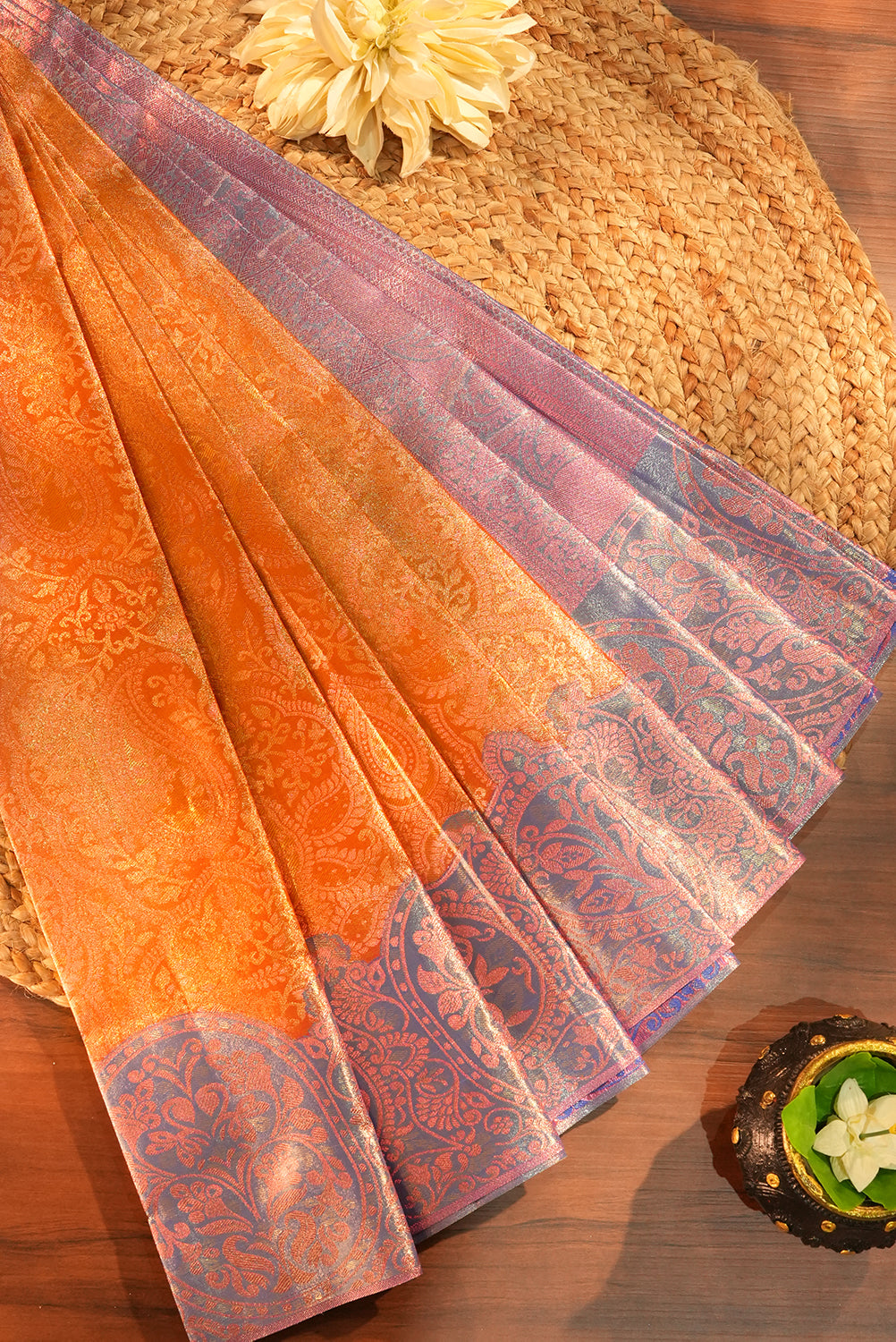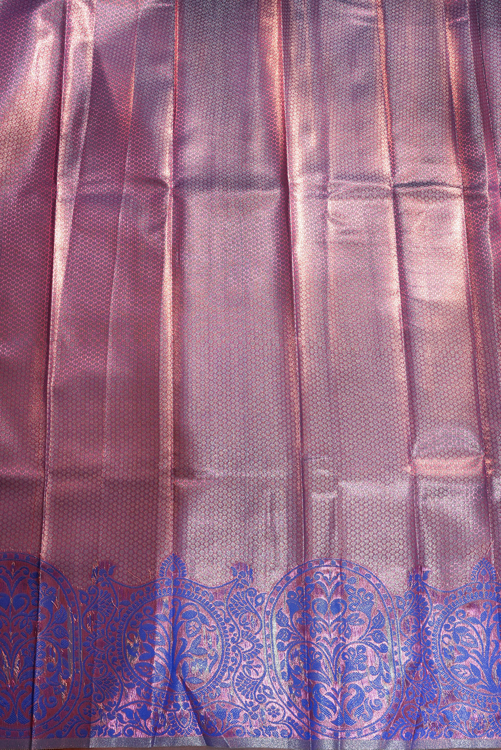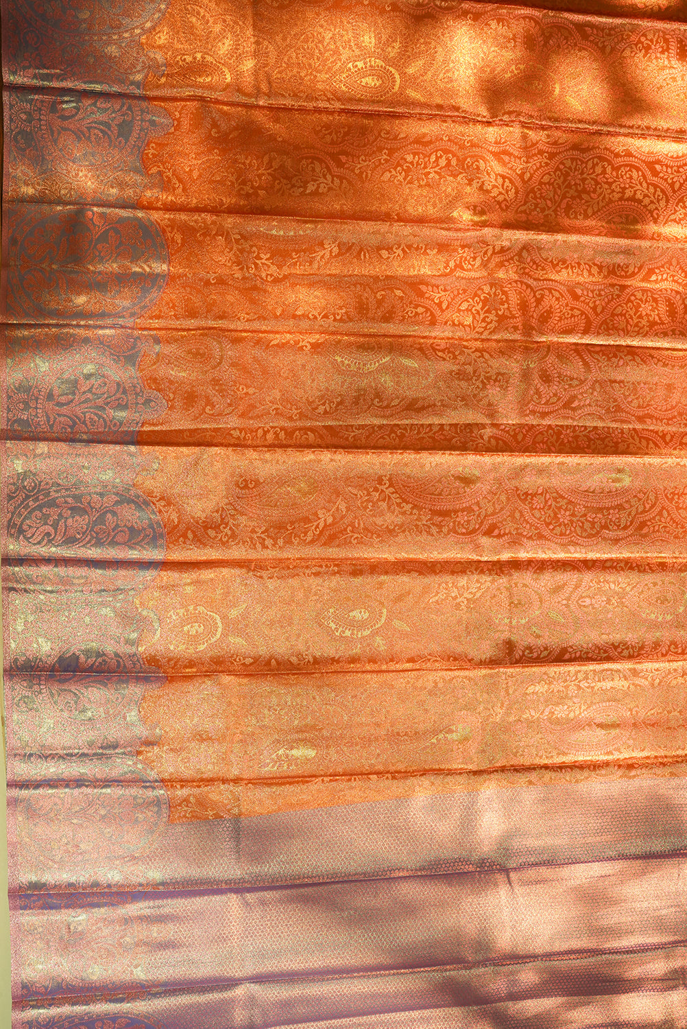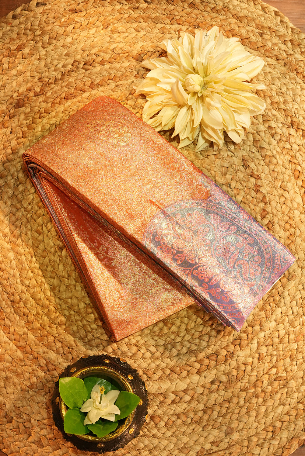 Copper-Gold Brocade Silk Saree with Lavender Zari Pallu