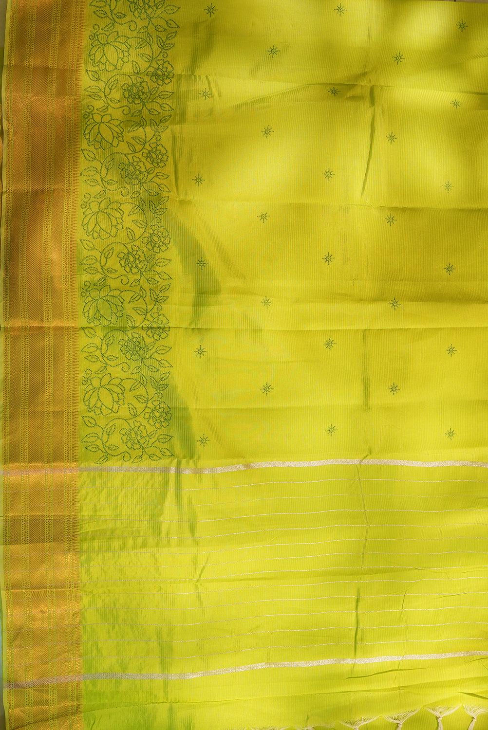 Pastel Mint Green Linen Saree with Multicolour Floral Embroidered Blouse