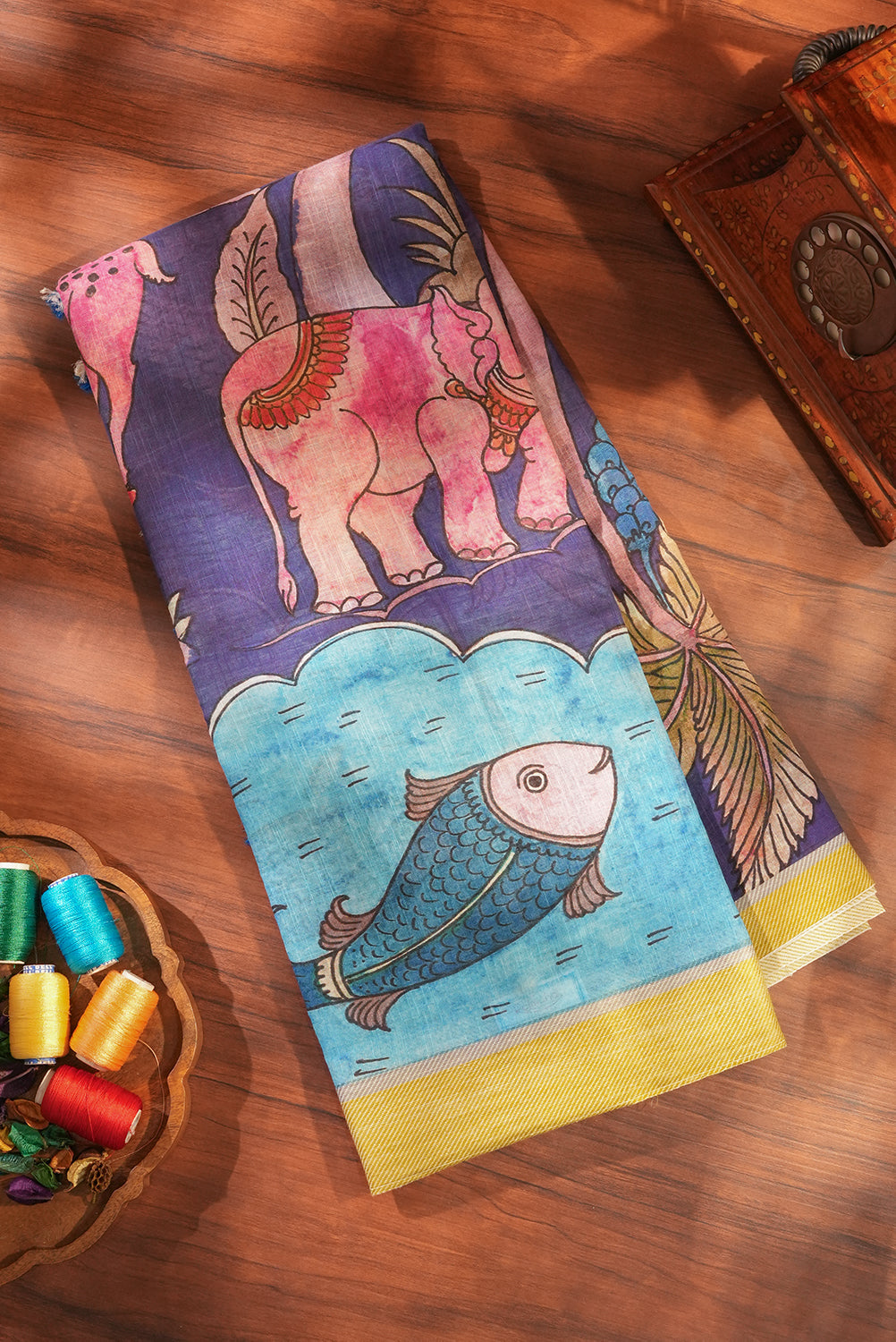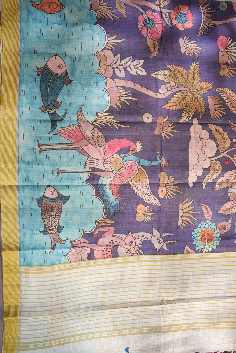 Peach Pastel Cotton Saree with Charcoal Kalamkari Floral Border