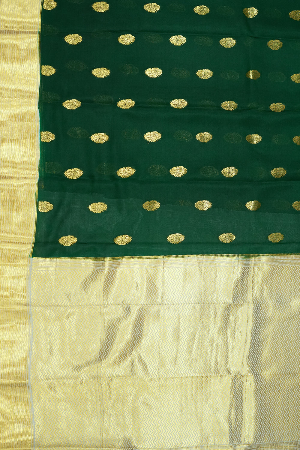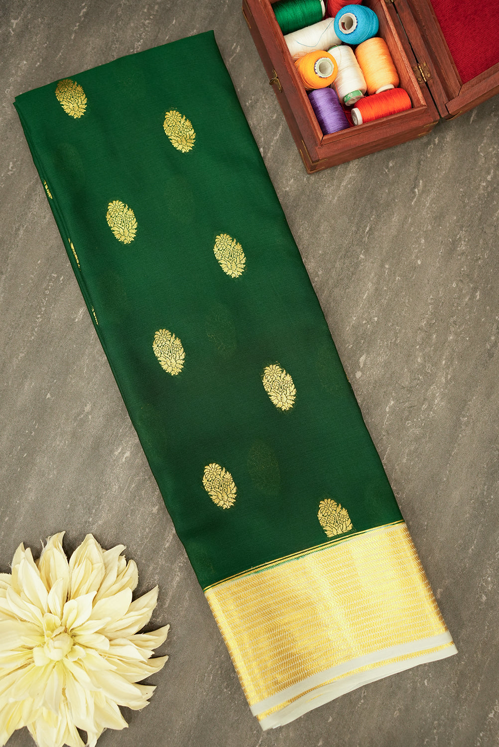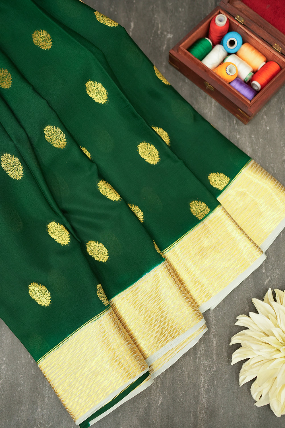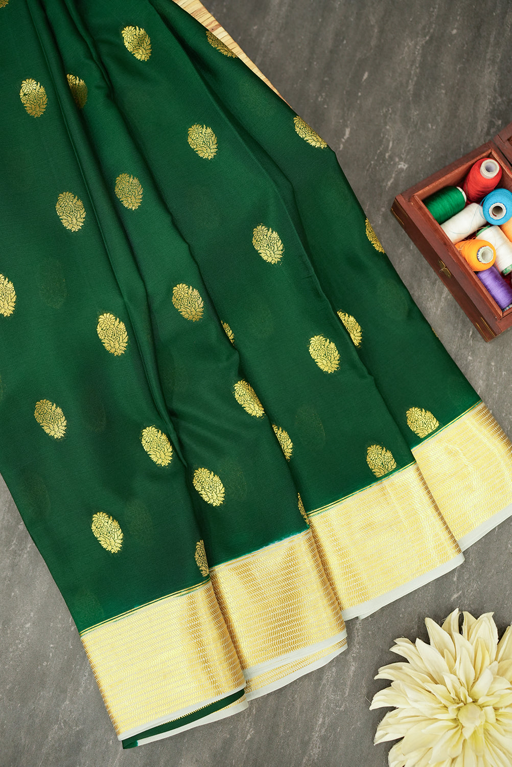 Emerald Green Mysore Silk Saree with Golden Buttis